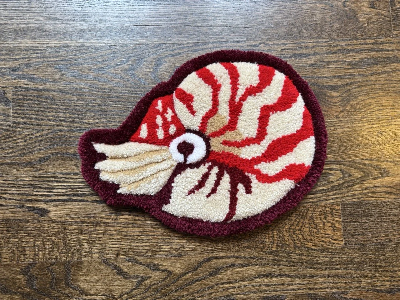Handmade, tufted rug made with acrylic yarn. Sizes may vary.