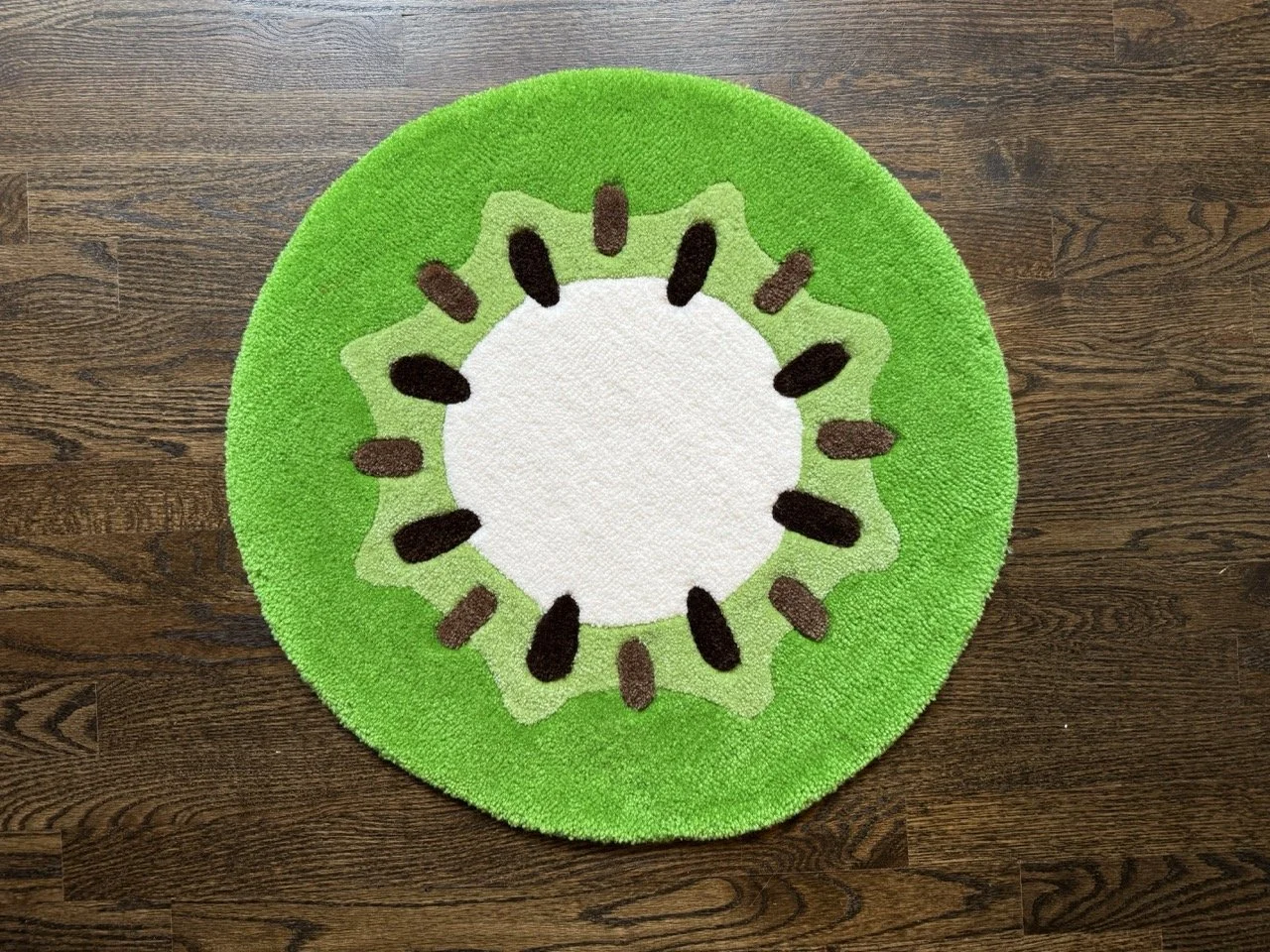 Handmade, tufted rug made with acrylic yarn. Sizes may vary.