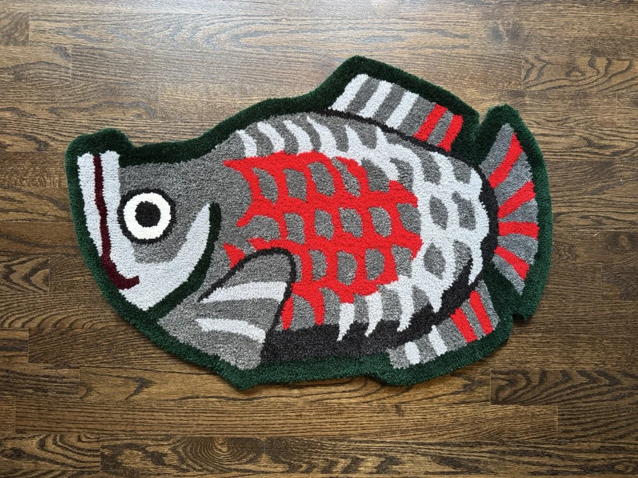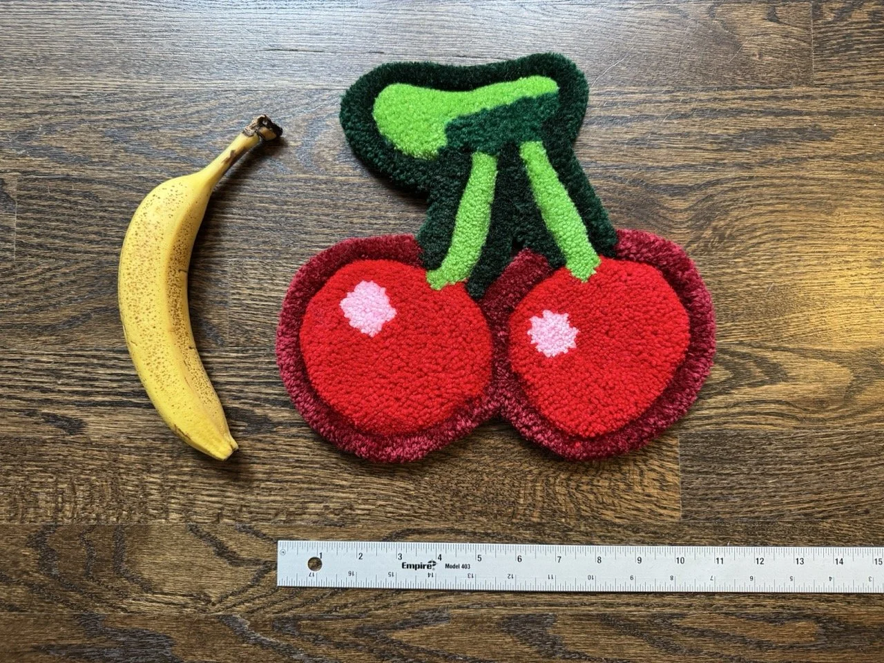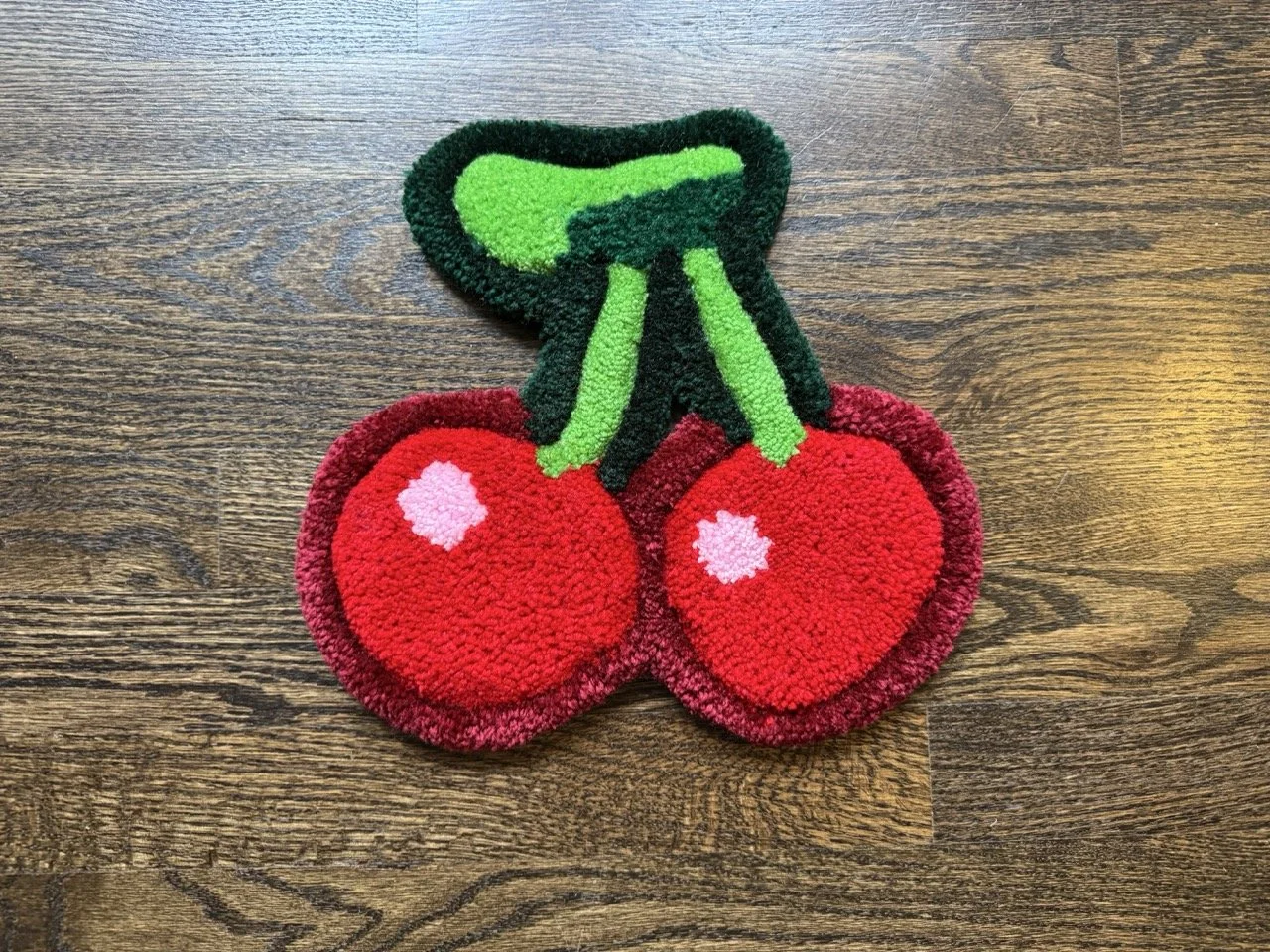 Handmade, tufted rug made with acrylic yarn. Sizes may vary.