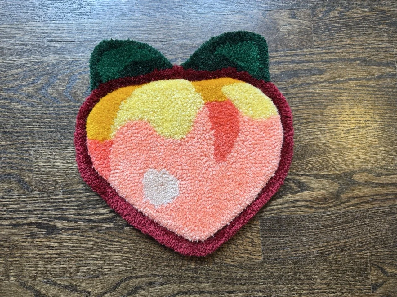 Handmade, tufted rug made with acrylic yarn. Sizes may vary.